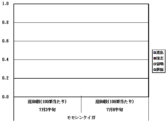 りんごのモモシンクイガ:産卵数 (5樹・100果調査)