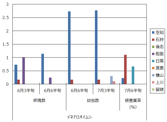 卵塊数、幼虫数、被害葉率 (25株調査)
