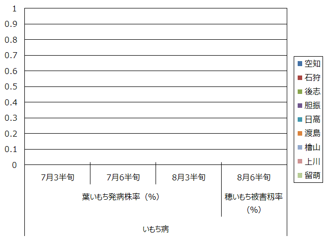 葉いもち発病株率 (100株調査)、 穂いもち被害籾率 (25株達観調査)