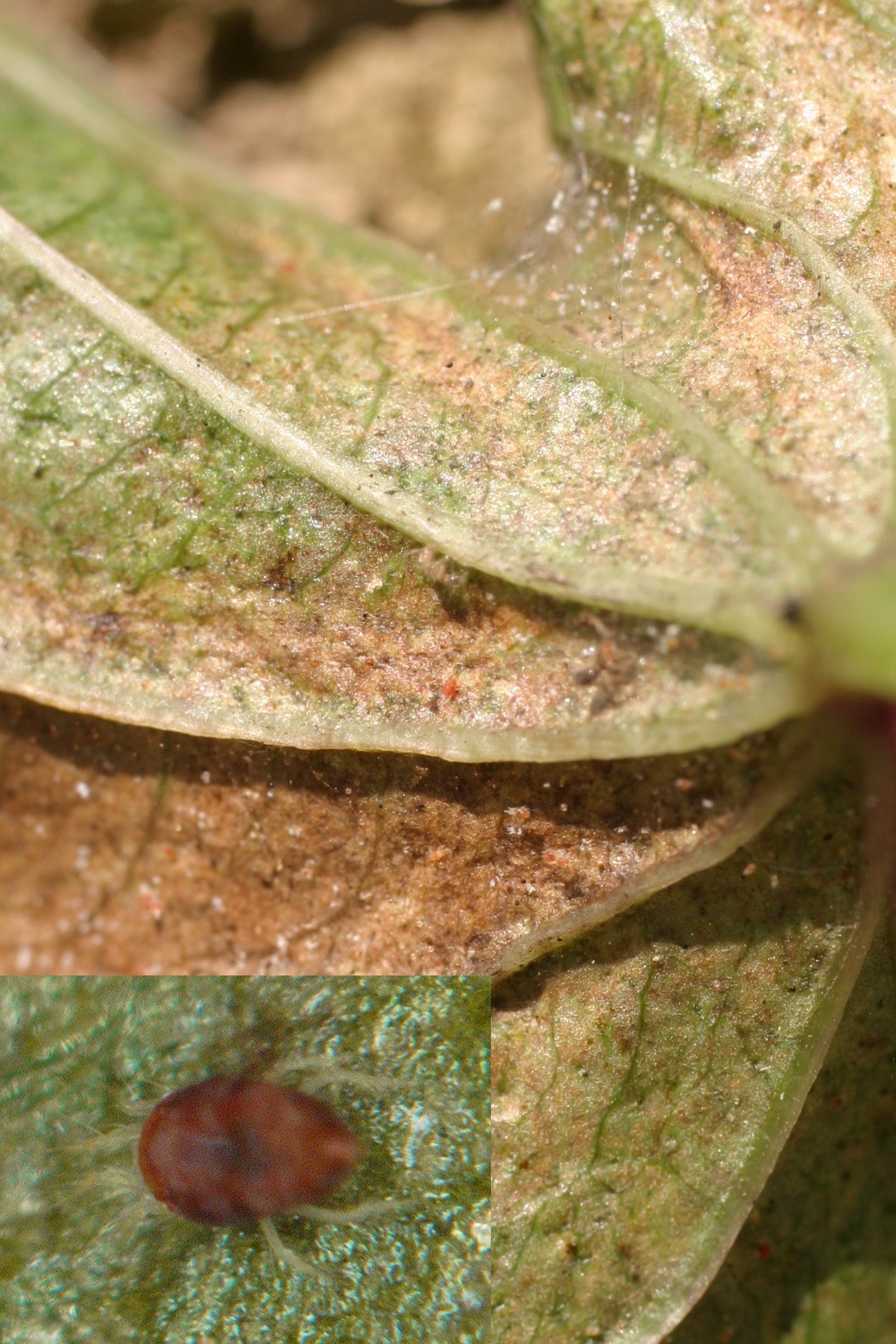 ![]() 被害葉拡大(左下:カンザワハダニ) |